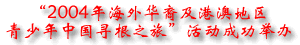 編者按 2004年尋根之旅活動(dòng)是中國(guó)尋根之旅夏令營(yíng)活動(dòng)創(chuàng)辦以來(lái)規(guī)模最大的一次。改革開(kāi)放以來(lái),中國(guó)國(guó)務(wù)院僑辦和中國(guó)海外交流協(xié)會(huì)通過(guò)海外僑團(tuán)、華教組織在每年寒暑假邀請(qǐng)海外僑社的青年骨干和華文學(xué)校的華裔青少年來(lái)華開(kāi)展夏(冬)令營(yíng)活動(dòng),每年參加僑辦系統(tǒng)夏令營(yíng)的總?cè)藬?shù)都在數(shù)千人。20多年來(lái),僑務(wù)部門(mén)始終堅(jiān)持“游教結(jié)合、寓教于游、加強(qiáng)協(xié)調(diào)、熱情服務(wù)”的工作方針,并從1999年開(kāi)始,形成了以“中國(guó)尋根之旅”為品牌的夏(冬)令營(yíng),在海外僑界中引起了極大反響,取得了良好的效果。這樣的活動(dòng),可以讓海外華裔青少年增進(jìn)對(duì)中國(guó)語(yǔ)言文化的認(rèn)知,了解祖(籍)國(guó)的歷史與現(xiàn)狀,保持華裔青少年的民族性。 國(guó)務(wù)院僑辦領(lǐng)導(dǎo)接見(jiàn)尋根之旅夏令營(yíng)營(yíng)員 本報(bào)訊:中國(guó)國(guó)務(wù)院僑辦主任陳玉杰7月27日晚在北京國(guó)賓酒店舉行歡迎晚宴,宴請(qǐng)參加“海外華裔及港澳地區(qū)青少年中國(guó)尋根之旅”夏令營(yíng)活動(dòng)的200余位領(lǐng)隊(duì)。陳玉杰在致辭中指出,要繼續(xù)加大華文教育工作的力度。 陳玉杰主任說(shuō),改革開(kāi)放20多年來(lái),中國(guó)的經(jīng)濟(jì)和社會(huì)發(fā)展取得了舉世矚目的偉大成就,綜合國(guó)力顯著增強(qiáng),國(guó)際地位日益提高。海外華僑華人學(xué)習(xí)中文、了解中華文化的熱情空前高漲,對(duì)華文教育的需求十分迫切。為了適應(yīng)形勢(shì)的發(fā)展變化,胡錦濤總書(shū)記今年3月在參加全國(guó)政協(xié)聯(lián)組會(huì)議時(shí)就進(jìn)一步做好新時(shí)期海外華文教育工作做了指示。根據(jù)胡總書(shū)記的指示,國(guó)務(wù)院僑辦在今后一個(gè)時(shí)期,將繼續(xù)加大華文教育工作的力度,與華僑華人朋友們一道,為海外華文教育的更大發(fā)展努力奮斗。 中國(guó)國(guó)務(wù)院僑辦副主任劉澤彭8月3日在上海接見(jiàn)了參加“尋根之旅”夏令營(yíng)的美國(guó)、英國(guó)華裔優(yōu)秀青年,勉勵(lì)他們努力學(xué)習(xí)中文,了解中華文化。他說(shuō),中國(guó)有五千年悠久的文明,中華文化對(duì)全世界華人有深刻影響,這在華裔青年身上也有著具體體現(xiàn)。華裔青年應(yīng)該感到作為華裔的驕傲。 他表示,此次參加美、英優(yōu)秀華裔青少年訪華團(tuán)的華裔青年是海外青年中的優(yōu)秀代表,中國(guó)政府為海外華裔青年取得的成績(jī)感到驕傲;通過(guò)此行,海外華裔青年也會(huì)為中國(guó)的發(fā)展感到自豪。 尋根在中國(guó) 北京尋根7月28日凌晨4時(shí)許,營(yíng)員們?cè)缭绲貋?lái)到了天安門(mén)廣場(chǎng),等待著國(guó)旗與太陽(yáng)同步升起的時(shí)刻。5時(shí)許,在雄壯的中華人民共和國(guó)國(guó)歌聲的伴奏下,五星紅旗冉冉升起。小營(yíng)員們紛紛舉起手中的相機(jī),記錄這一激動(dòng)人心的時(shí)刻。這是他們第一次觀看天安門(mén)廣場(chǎng)的升旗儀式,他們興奮不已,激動(dòng)不已。很多營(yíng)員都表示,站在祖(籍)國(guó)首都的土地上,觀看威武的國(guó)旗護(hù)衛(wèi)隊(duì)?wèi)?zhàn)士升起國(guó)旗,這是他們一生中最難忘的時(shí)刻,他們都希望自己可以在2008年來(lái)到北京觀看奧運(yùn)會(huì),也希望可以看到中國(guó)國(guó)旗在奧運(yùn)會(huì)賽場(chǎng)上更多次升起。營(yíng)員們還游覽了天壇、故宮等北京名勝古跡。他們認(rèn)真地向?qū)в握?qǐng)教建筑的歷史及構(gòu)造原理,感嘆中國(guó)古代建筑技藝的高超。營(yíng)員們都說(shuō),游覽讓他們加深了對(duì)中國(guó)歷史的了解,以及對(duì)中國(guó)傳統(tǒng)文化的認(rèn)識(shí)。很多營(yíng)員過(guò)去只在電視和畫(huà)冊(cè)上看到過(guò)這些建筑,而這次親臨其境,雄偉壯觀的建筑群、深厚的文化內(nèi)涵和歷史底蘊(yùn)讓他們贊嘆不已。 天津?qū)じ袊?guó)尋根之旅天津夏令營(yíng)是中國(guó)尋根之旅夏令營(yíng)的組成部分之一。營(yíng)員們游覽了天津市容,參觀了天津民間藝術(shù),與天津市青少年進(jìn)行了聯(lián)歡。天津市政府有關(guān)領(lǐng)導(dǎo)表示,連續(xù)多年舉辦的“中國(guó)尋根之旅天津夏令營(yíng)”活動(dòng)受到了海外華僑華人社團(tuán),特別是海外華裔青少年的廣泛歡迎,不僅增進(jìn)了海外華裔青少年對(duì)祖籍國(guó)、對(duì)天津的了解,而且也促進(jìn)了天津青少年與海外華裔青少年的友誼和交流。天津的發(fā)展,也離不開(kāi)廣大海外僑胞的關(guān)心和支持。 廣東尋根今年來(lái)廣東作尋根之旅的海外華裔青少年達(dá)160多人,創(chuàng)下歷史紀(jì)錄。部分華裔尋根青年是首次走進(jìn)廣州市民家庭。在同齡人的陪同下,他們爬白云山,逛西關(guān)大屋,夜游珠江,南越王墓攬古探勝,小茶館內(nèi)聽(tīng)南粵小調(diào),喝茶品茗,切身體驗(yàn)故鄉(xiāng)人生活。廣州華南師范大學(xué)內(nèi),一場(chǎng)近500人的盛大聯(lián)歡晚會(huì),成為銘刻在尋根團(tuán)營(yíng)員們心中永遠(yuǎn)的記憶。尋根組織者說(shuō),20多年