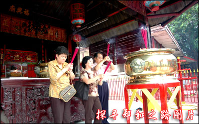 位于泰國古城的三寶公廟為永樂間鄭和所建,寺廟宏麗,在宮殿內(nèi)一尊近三十余米高的鄭和神像威武壯嚴(yán)。