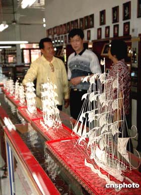 巴厘島民族村留有鄭和下西洋深深的印記。在一銀飾展覽館,當(dāng)?shù)劂y匠為紀(jì)念鄭和下西洋六百周年,用銀制成的鄭和下西洋寶船十分精美。銀店老板說,鄭和下西洋開展海上貿(mào)易,給巴厘島帶來了繁榮,也使我們學(xué)會(huì)了中國精湛的制銀工藝。