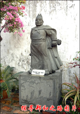 在馬六甲歷史博物館的庭院內(nèi)安放著一尊高三米,重三噸的鄭和石像。馬六甲歷史博物館里面開(kāi)辟了“鄭和文物紀(jì)念廊”,以各種圖片、數(shù)據(jù)、實(shí)物,詳細(xì)地介紹了鄭和七下西洋及與馬六甲的歷史關(guān)系。