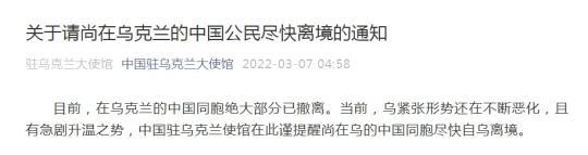 中新網(wǎng)3月7日日電 據(jù)中國駐烏克蘭大使館官方微信公眾號消息,目前,在烏克蘭的中國同胞絕大部分已撤離。當前,烏緊張形勢還在不斷惡化,且有急劇升溫之勢,中國駐烏克蘭使館在此謹提醒尚在烏的中國同胞盡快自烏離境。