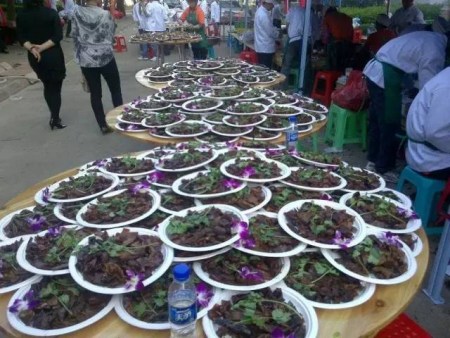 拌好的糕料全部裝入籠內(nèi)后,面上用糖水抹平,講究的人家還取紅棗、桂花、芝麻等小料在糕面上擺成圖案,如“鳳采牡丹”、“龍鳳呈祥”,“恭喜發(fā)財(cái)”、“五谷豐登”等。糕蒸好后,色、香、味俱全,非常美觀。