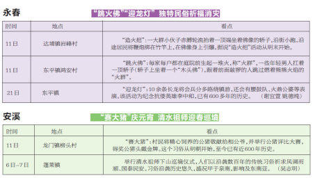 另外,9日至10日,界山鎮(zhèn)河陽村將舉行大鼓隊巡回表演。14日,界山鎮(zhèn)鳩林村將舉行廻龍燈游燈活動。 (蘇凱芳)