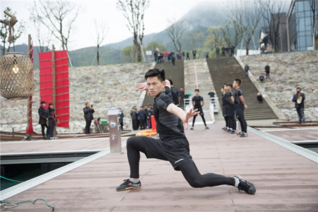 上午8時50分許,在煙波浩渺的千峽湖畔,吉樂齊鳴、紅綢飄蕩。千峽湖身手不凡的武術演員首先帶來精心編排的武術表演,這是他們入職千峽湖以來的首次集體亮相,穩(wěn)健瀟灑的動作和精彩的表演贏得眾人喝彩。