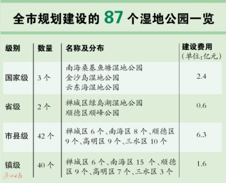 佛山擬建87個(gè)濕地公園 共投資10.9億元