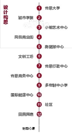 在規(guī)劃中,小鎮(zhèn)將以美式教育為重點(diǎn)、歐美文化為特色、田園生活為基調(diào),構(gòu)建城鎮(zhèn)的產(chǎn)業(yè)體系,配置城鎮(zhèn)的功能和生活組織,最終形成一心一軸、四片區(qū)、多節(jié)點(diǎn)的布局。