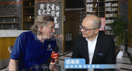 溫州市圖書館館長(zhǎng)胡海榮接待了大衛(wèi)。大衛(wèi)也客串了一把記者,把關(guān)心的問題問了個(gè)痛快。