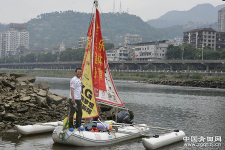 之后,吳曉亮從大連出發(fā),途徑五個(gè)省份、十多個(gè)城市,沿著渤海、黃海、東海一路漂流,到達(dá)我縣時(shí)他正好漂了一萬公里,離目的地也還有一萬公里。