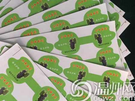 所謂的“越南青芒”標簽,便是出自此處。此外,該商店里還有紅富士、阿克蘇、冰糖心等10余種水果標簽。記者表示要一款葡萄的標簽,店家便給了記者一款“巨峰葡萄”的標簽,“一張8個標簽,5毛一張。”該標簽上,還寫著“海邊沙地,綠色無公害食品”字樣。