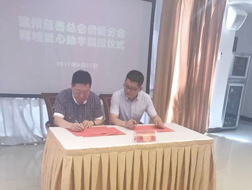 在拜城縣考察期間,考察團(tuán)一行慰問了溫州援疆指揮部,并與溫州援疆指揮部指揮長、黨委書記、拜城縣委副書記張洪及副指揮長周建強(qiáng),交流探討南疆產(chǎn)業(yè)發(fā)展機(jī)遇,考察團(tuán)成員就各自行業(yè)領(lǐng)域投資意向談了想法,以及對感興趣的項(xiàng)目進(jìn)行了深入互動(dòng)交流。阿聯(lián)酋浙江僑團(tuán)聯(lián)合會(huì)會(huì)長、溫州市僑商協(xié)會(huì)執(zhí)行會(huì)長陳志遠(yuǎn)以溫州慈善總會(huì)僑愛分會(huì)名義向拜城縣教育局捐贈(zèng)了5萬元愛心助學(xué)款,并簽署了愛心助學(xué)協(xié)議。