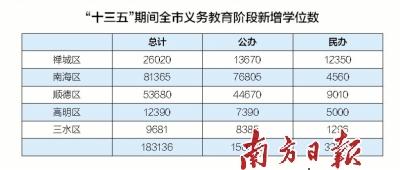 去年底發(fā)布的《佛山市義務(wù)教育階段學(xué)?;A(chǔ)教育設(shè)施五年提升行動(dòng)計(jì)劃(2016-2020)》顯示,到2020年,佛山全市將新建、改建、擴(kuò)建各類義務(wù)教育階段學(xué)校176所,新增學(xué)位約18萬(wàn)個(gè)。