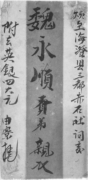 這封“煩至海澄縣三都赤石社問交 魏永順賢弟親收 附去英銀四大元 由寮手托” ,右上左下均鈐如意章各一。背面無框幫號章:南55幫918發(fā)(數(shù)字為中國商碼)。另蓋一天一局廈門分局圓形外文武線、內(nèi)一圈信用戳:郭有品天一批郊住廈門水仙宮理信分大銀無酒資;另有手寫阿剌伯?dāng)?shù)字“10.1” 于信用戳內(nèi)圈。根據(jù)這兩個戳判斷,該函由天一越南分局于9月18日從越南寄出,10月1日到廈門,倒是沒費多少周折??上]存年份、時間難以判斷。更可惜的是信封左下落款處僅寫一“寮” 字,須知老撾本身較大地名是上、中、下寮,應(yīng)該還有更詳細(xì)的地名。