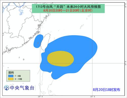 大風(fēng)預(yù)報(bào):20日20時(shí)至21日20時(shí),巴士海峽、臺(tái)灣海峽、臺(tái)灣以東洋面以及臺(tái)灣東南部沿海將有7-8級大風(fēng),“天鴿”中心經(jīng)過的附近海域的風(fēng)力有9-10級,陣風(fēng)11級。