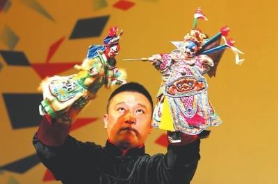 晉江市掌中木偶劇團(tuán)、漳州市木偶劇團(tuán)合作表演《掌中奇葩》。