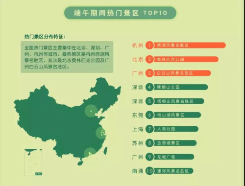 端午出游如何避開(kāi)熱門景區(qū)?中國(guó)旅游協(xié)會(huì)與高德地圖聯(lián)合發(fā)布的端午出游指南顯示,端午期間全國(guó)熱門景區(qū)主要集中在北京、深圳、廣州、杭州等直轄市及省會(huì)城市。最熱景區(qū)是依舊是杭州西湖風(fēng)景名勝區(qū),其次是北京奧林匹克公園和廣州白云山風(fēng)景名勝區(qū)。