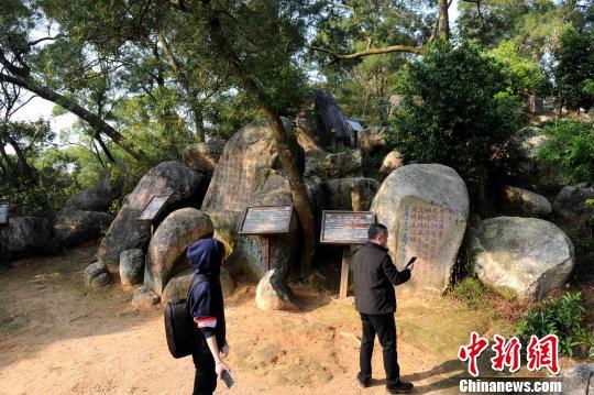 果老山高峰突起海上,重重疊疊。山上怪石嵯峨,八峰環(huán)拱,有明嘉靖、隆慶、萬歷年間石刻28處(懸鐘城內(nèi)有石刻37方),多為當(dāng)時(shí)駐懸鐘所城官員的記事和對(duì)景物的題詠、吟答、唱和,成為福建省南部黃金海岸著名的海上碑林。