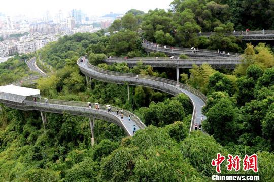福州市園林局工作人員說,福州的城市綠道建設(shè)結(jié)合串珠公園建設(shè)、內(nèi)河治理,使市民和游客能享有登山看城、游園親水的“一站式”體驗,其中“福道”成為了福州這個“山水”城市特有的“名片”。