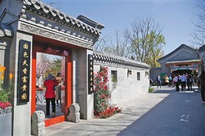 “在北京,最小的胡同里的房子里也有院子與樹?!笔缊@會(huì)中華園藝展示區(qū)中的北京園,有胡同、有四合院,還有柳樹紅墻、蒲扇馬扎兒、兒童鮮花。游客從院落中領(lǐng)略北京的美。