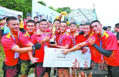 本屆龍舟賽更加注重群眾參與,業(yè)余組比賽首次設(shè)立社區(qū)組。圖為企業(yè)組第一名隊員開心合影。