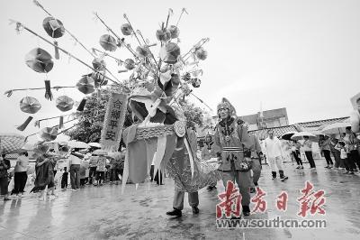 一條用竹篾和彩紙糊成的龍舟,由裝扮成古代軍士的演員輪流抬著游城,延續(xù)端午龍舟習(xí)俗。6月3日上午,第五屆“大城所游旱龍”民俗活動在潮州市饒平縣所城鎮(zhèn)大城所古城大衙開幕。這一習(xí)俗已在當(dāng)?shù)貍鞒?00余年,系省級非物質(zhì)文化遺產(chǎn)項(xiàng)目。