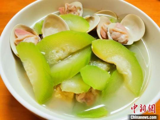 “以前老一輩人講,清明前吃嫩節(jié)瓜,夏至后吃老節(jié)瓜。如今的春節(jié),大家對雞、鵝、燒豬肉等吃多了會覺得膩,烹頓蝦米仔炒節(jié)瓜或腐乳炒節(jié)瓜都很‘利口’(臺山話為爽口的意思)。天氣炎熱時,本地人喜歡用節(jié)瓜煲湯或滾湯,如蝦干(或蝦米)節(jié)瓜湯、咸蛋瘦肉節(jié)瓜湯、沖菜葉節(jié)瓜湯、泥猛魚節(jié)瓜湯、石斑仔節(jié)瓜湯、白貝(或沙白)節(jié)瓜湯等,湯水鮮甜,烹飪做法較為簡單,據(jù)聞有解暑、止渴、生津等作用?!迸_城街道園田社區(qū)年過七旬的黃大爺說,嫩節(jié)瓜僅需用小刀或竹片把皮刮掉就可切塊烹飪,老節(jié)瓜烹飪前則需削皮、刨去瓜瓤。