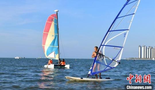 海口最美海岸線西海岸線海域周圍迎來不少民眾體驗(yàn)親水運(yùn)動(dòng)。符宇群 攝