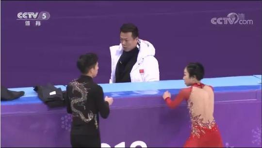 一曲結(jié)束,韓聰?shù)鹊搅俗喴蝸淼浆F(xiàn)場(chǎng)的隋文靜,他推著自己的搭檔滑上冰面,而隋文靜早已掩面哭泣。