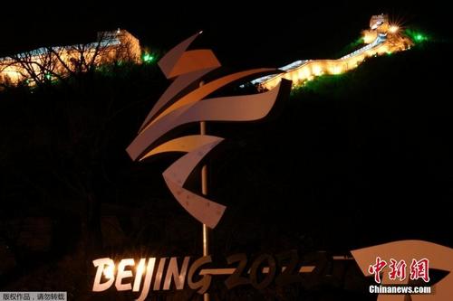 八達(dá)嶺長城燈光璀璨 與奧運(yùn)標(biāo)志遙相呼應(yīng)