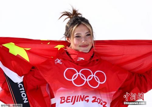 谷愛凌摘得坡面障礙技巧銀牌 身披五星紅旗領(lǐng)獎(jiǎng)
