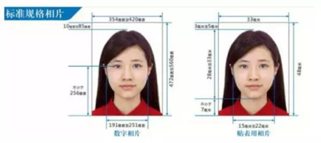 規(guī)格:數(shù)字相片規(guī)格不低于354(寬)×472(高)像素,不大于420(寬)×560(高)像素,貼表用相片規(guī)格為寬33㎜,高48㎜。