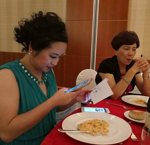 甚至在羅馬歡迎晚宴上,僑胞們一邊聆聽裘主任致辭,一邊也沒忘記互相傳遞二維碼,掃描下載“僑寶”客戶端。