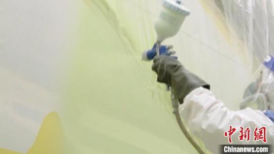 圖為工作人員正在為飛機(jī)噴涂顏色。南航廣西分公司供圖