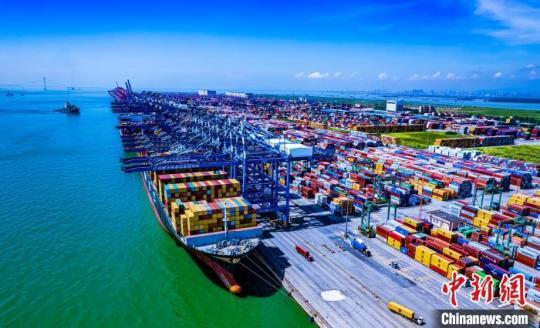 站在廣州港南沙港區(qū),臨岸遠(yuǎn)眺,運(yùn)載新能源汽車、原木、紡織品等貨物的大型集裝箱船舶與藍(lán)海交織相映,仿佛在述說千年商都的“不打烊”貿(mào)易故事。