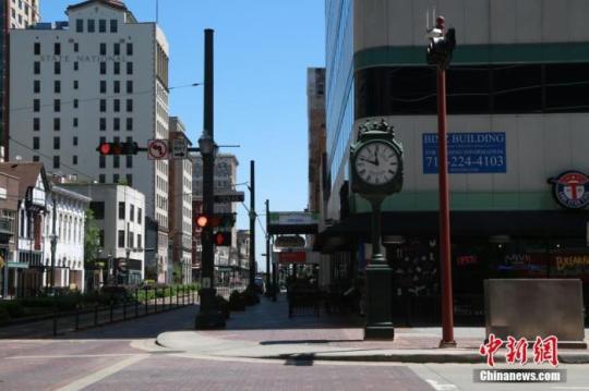 當(dāng)?shù)貢r間5月1日,美國得州開始“重啟”經(jīng)濟(jì),餐廳、零售店等可按要求恢復(fù)運(yùn)營。圖為“重啟”首日,休斯敦往日熱鬧的街道空空蕩蕩。中新社記者 曾靜寧 攝