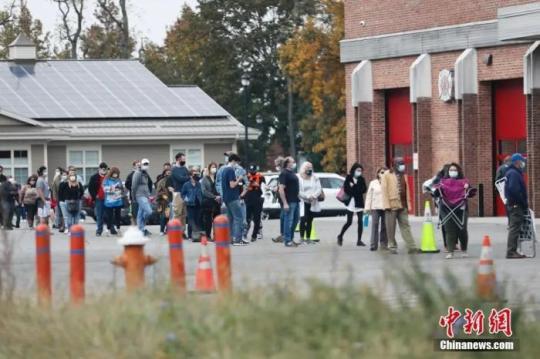 當(dāng)?shù)貢r(shí)間10月24日,紐約州蘇福克縣一處投票站,選民排隊(duì)為2020美國(guó)總統(tǒng)大選提前投票。中新社記者 廖攀 攝