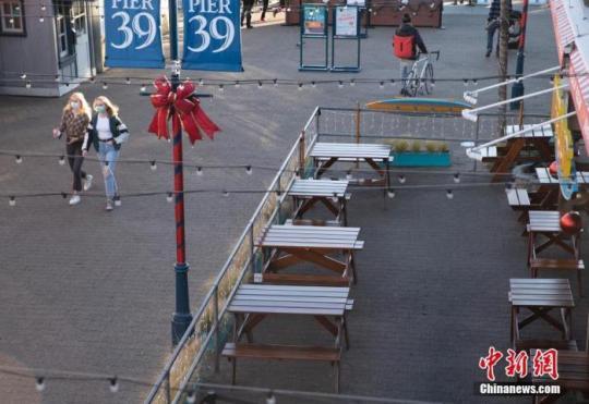 當?shù)貢r間12月7日,美國加州舊金山漁人碼頭一家餐廳停止提供戶外就餐服務(wù)。中新社記者 劉關(guān)關(guān) 攝