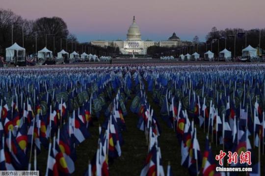 當(dāng)?shù)貢r(shí)間1月19日,美國首都華盛頓,第46任美國總統(tǒng)就職儀式已經(jīng)準(zhǔn)備就緒。圖為華盛頓國家廣場上插滿了旗幟。