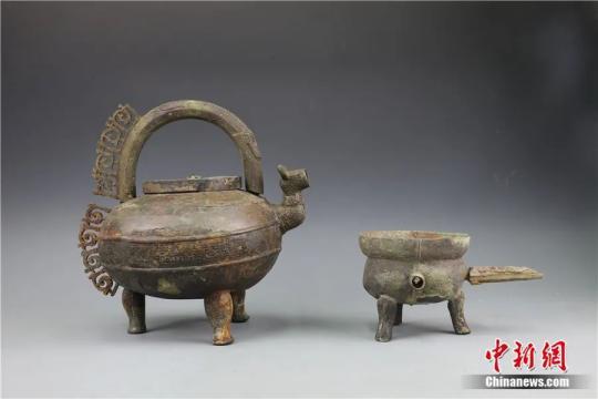 國(guó)字山墓葬中出土的兩件銅盉。中新社發(fā) 江西省文物考古研究院 供圖