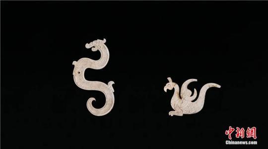 國(guó)字山墓葬中出土的玉龍鳳。中新社發(fā) 江西省文物考古研究院 供圖
