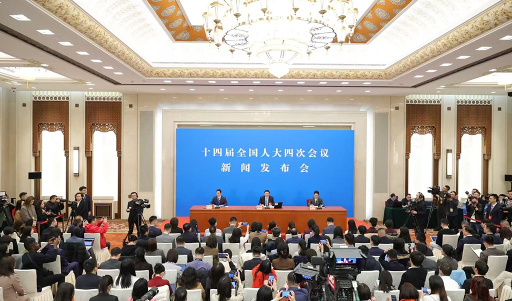 十四屆全國人大四次會議于3月4日12時在人民大會堂新聞發(fā)布廳舉行新聞發(fā)布會,由大會發(fā)言人就大會議程和人大工作相關問題回答中外記者提問。