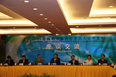 華聲報北京訊(記者 王凱):9月1日上午,國務(wù)院僑辦副主任許又聲攜僑辦文宣司、國外司有關(guān)負責人,與來京參加“2006海外華裔青年杰出人才華夏行”活動的代表們進行了座談交流。