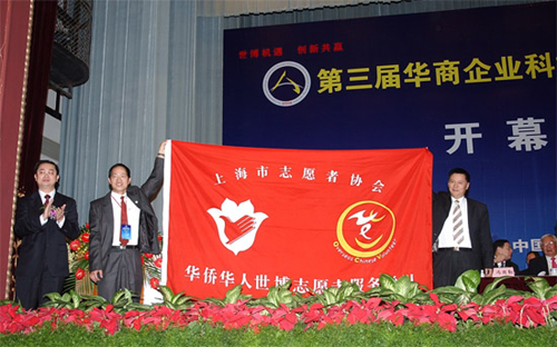 開幕式上,還舉行了“華僑華人世博志愿者服務(wù)總隊”成立授旗儀式。開幕式后,召開了省(市)部長論壇。