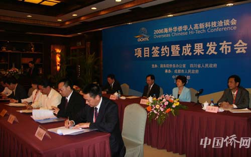 由國務院僑務辦公室和四川省政府主辦,成都市政府承辦的2006海外華僑華人高新科技洽談會10月18、19日在成都舉行,會議期間,舉辦了“天府論壇”、“跨國公司暨華商企業(yè)懇談會”、“海外知名專家專場報告會”、“投資創(chuàng)業(yè)暨人才招聘說明會”、“項目洽談、簽約”等一系列活動。來自世界23個國家和地區(qū)的海外華僑華人專業(yè)人士和華商代表300余人參會。