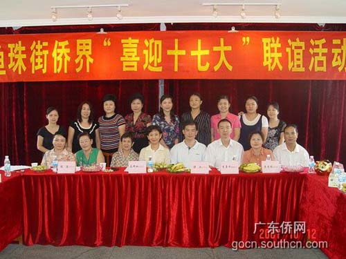 中國僑網(wǎng)消息:10月12日上午,廣州市黃埔區(qū)魚珠街僑聯(lián)舉行了“喜迎十七大”聯(lián)誼活動,區(qū)僑聯(lián)、區(qū)僑辦、街道黨工委負(fù)責(zé)人,回國探親的海外僑胞和歸僑僑眷代表共30多人參加了活動。