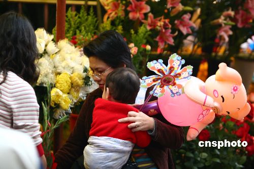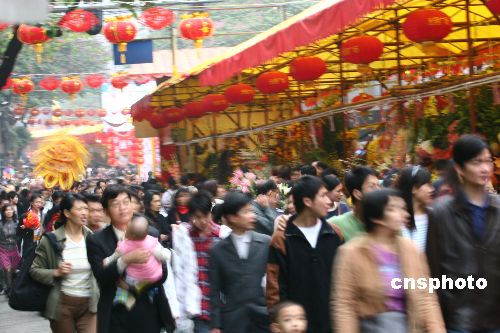 中新社廣州二月十五日電 (記者 王華)花城過年大戲二00七豬年迎春花市開門迎客,今天凌晨花家進場擺花開市;ㄊ信茦墙鹭i奪目,十大花街群芳爭艷、芬芳滿城、喜氣洋洋。