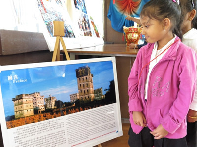 前來參觀的師生絡(luò)繹不絕。年齡不一、膚色各異的小學(xué)生圍在中國使館年輕外交官身旁,好奇而興奮地欣賞著展覽中傳統(tǒng)與現(xiàn)代緊密交織、自然與人文和諧共榮的魅力中國,認真而著迷地聽著一個又一個與之相關(guān)的故事與傳說。