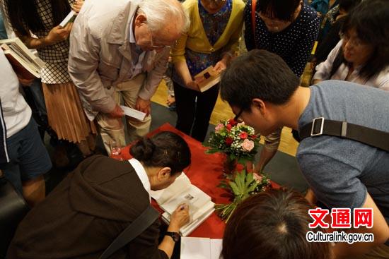 朗誦結(jié)束后,王安憶又與觀眾積極互動,就文學(xué)創(chuàng)作等問題進行了熱烈的交流與探討。不少觀眾紛紛請王安憶簽名并與之合影留念。(閆健)