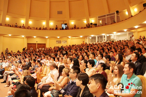 中國愛樂樂團“2015絲綢之路巡演”音樂會10日在哈薩克斯坦國家音樂學院舉行。中國駐阿拉木圖總領事張偉、阿拉木圖市議長卡贊巴耶夫等哈各界友好人士、華人華僑、中資機構、駐阿外交使團代表及當?shù)孛癖姽?00余人觀看了演出。