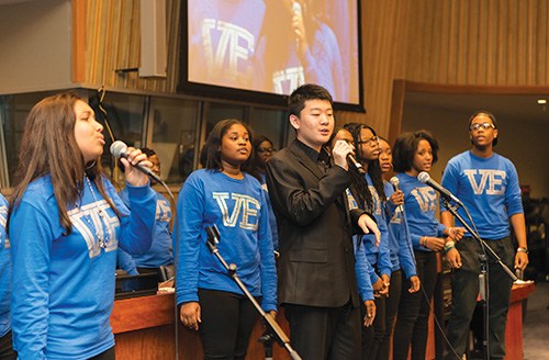 楊德屹與哈林區(qū)青少年合唱團(tuán)合作,共同演繹了公益歌曲《We Are the World》,贏得了全場觀眾的熱情掌聲,也彰顯中美青少年之間的成功合作精神。