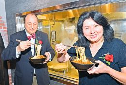 一張張餐桌上擺放著中式餐具,杯盤碗筷色彩艷麗。來賓顧客間觥籌交錯,晉風(fēng)晉韻中傾訴祝?!?2月19日,一座古色古香、裝修典雅的山西刀削面館——“山西面家”在洛杉磯開業(yè)。開業(yè)儀式結(jié)束后,店內(nèi)座無虛席,人頭攢動。不出洛杉磯就能品嘗正宗山西味道,觀賞到面食、剪紙表演,感受與眾不同的視覺和味覺雙重沖擊,這讓來賓和顧客無不交口稱贊。“開業(yè)第一天,從上午11時至15時30分,就有700余人前來就餐,這對總面積300余平方米、108個餐位的‘山西面家’來說,可謂人氣爆棚,大大超出了預(yù)期。我們的合作是一個很好的開始……”美國山西餐飲文化拓展集團(tuán)董事長趙偉華、海鋒餐飲公司總裁楊志峰的手緊緊握在一起,臉上滿是笑容。